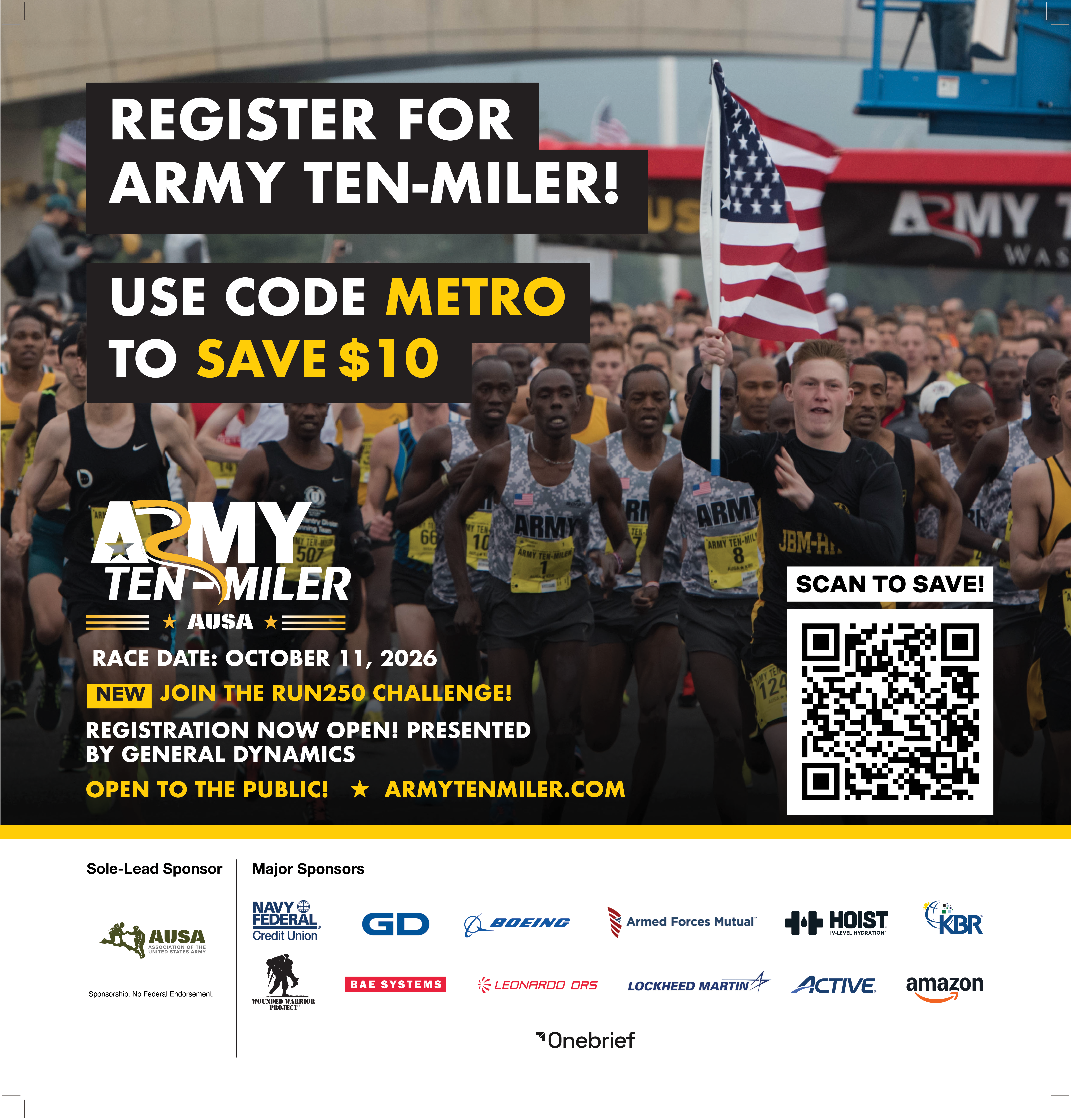 Started in 1985, the Army Ten-Miler (ATM) takes place each October in Washington, D.C. to promote the Army, build esprit de corps, support Army fitness goals, and enhance community relations. All race proceeds benefit Soldier MWR programs.  Use code METRO to save!
